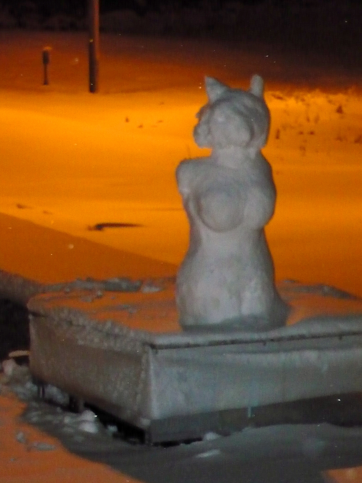 Koettiin myös varsinaisia jännitysmomentteja, kun joku auto kurvasi sinne rinteiden juurelle. Piilouduttiin kukkulan taakse, vaikkakin tulijat kyllä varmasti huomasivat meidät. Kukkulan takaa kurkittiin, että mitä ne tulijat tekee ja hetki jo luultiin, että ollaan pulassa. Mietittiin nimittäin, jos siellä ei olisikaan saanut olla ja nyt joku tulee ajamaan meitä pois sieltä. En olisi ikinä uskonut, että jotkut muutkin hullut tulee pulkamäkeen vaille kaksi yöllä! Toisaalta onneksi tulivat, sillä autolle tarvittiin työntöapua, kun se vaan suti siinä hangessa paikallaan. Tän talven ekat mäenlaskut ja auton jumimiset takanapäin ja molempia vielä monet kerrat edessä! Can't wait.
